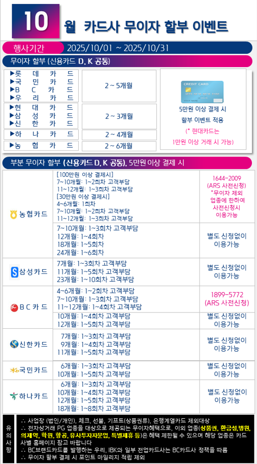 2025년 10월 카드사 무이자 할부 이벤트 - 비사업자카드단말기 - 라인솔루션