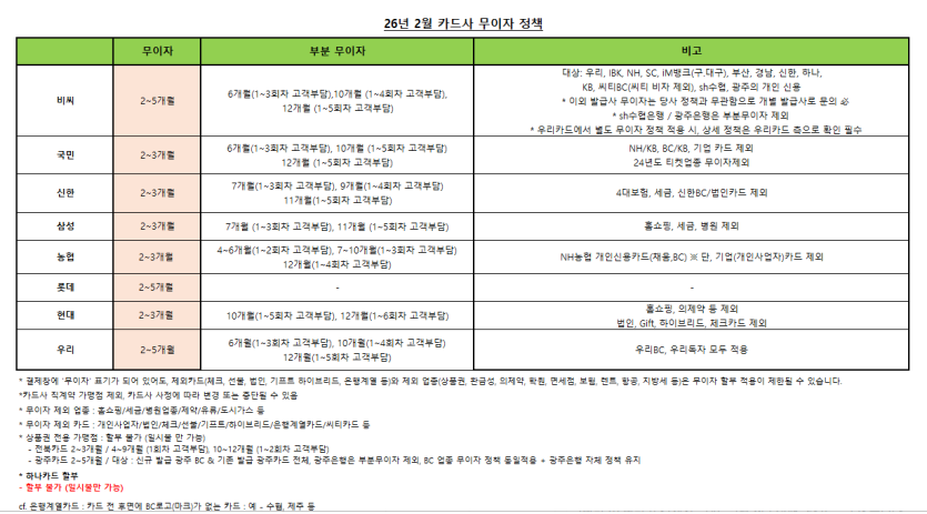 2026년 02월 카드사 무이자 할부 이벤트 - 비사업자카드단말기 - 라인솔루션